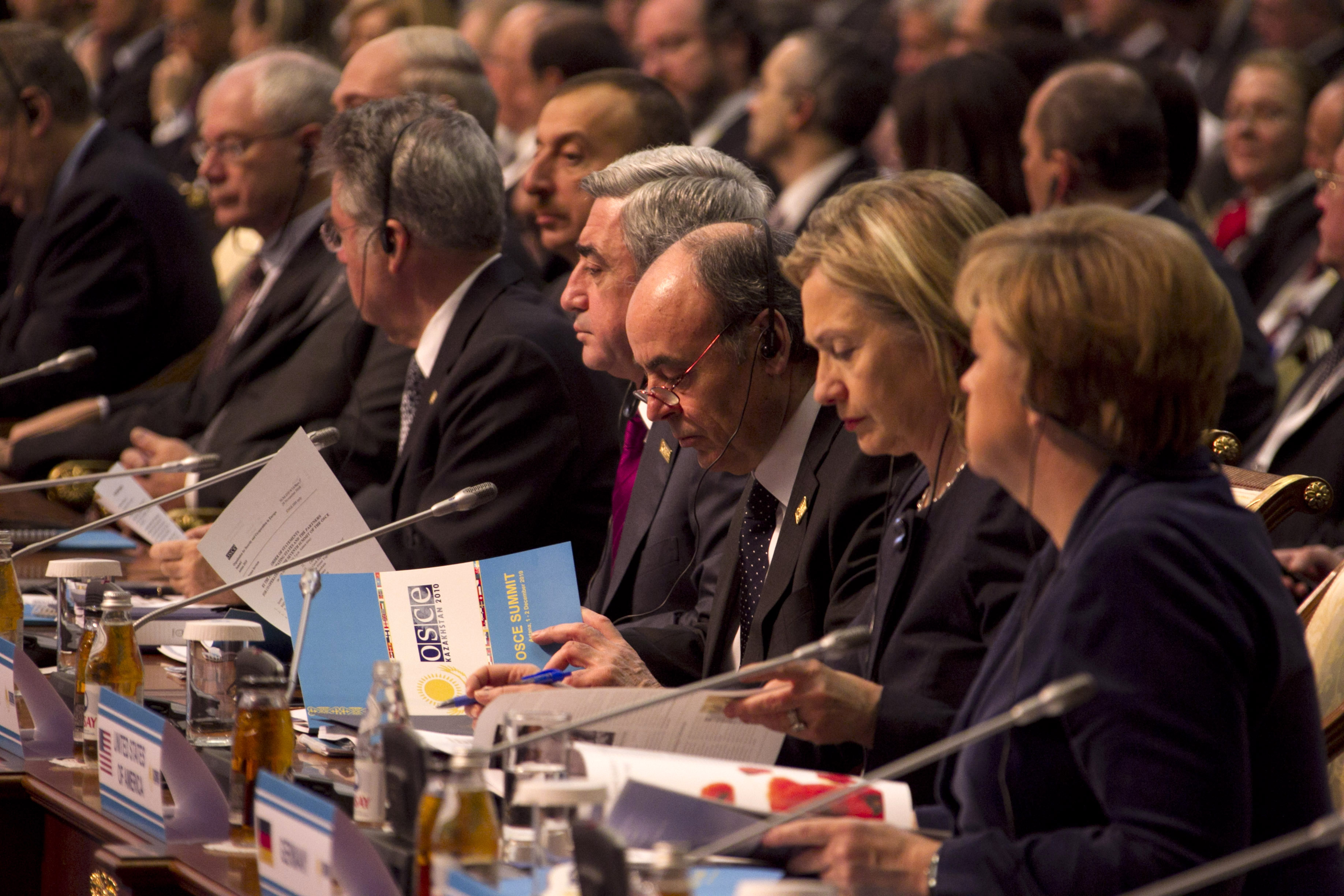 Главы государств и правительств во время проведения первого дня саммита ОБСЕ в Астане, 1 декабря 2010.