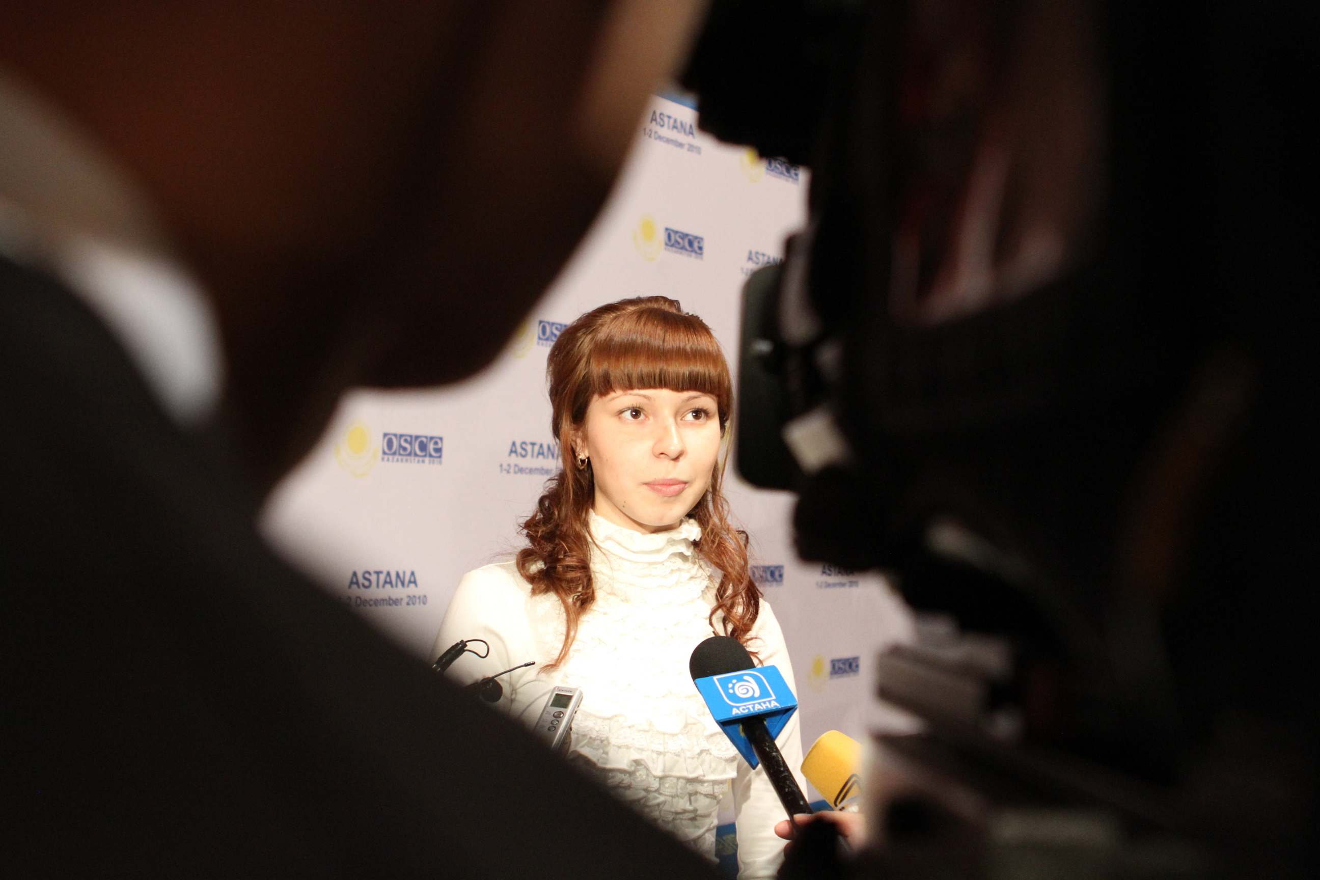 Юлия Бурмистрова - победительница конкурса сочинений, дает интервью, Астана, 29 ноября 2010.