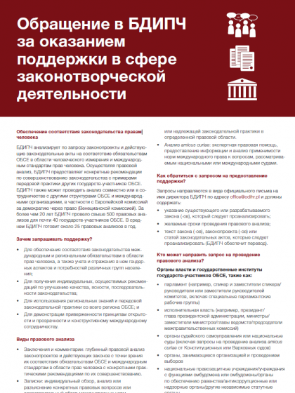 Обращение в БДИПЧ за оказанием поддержки в сфере законотворческой деятельности
