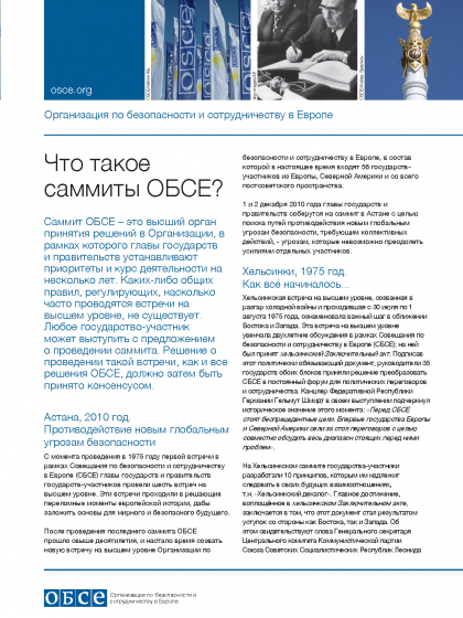 In this issue in Russian: Message from the President of Kazakhstan Nursultan Nazarbayev; OSCE Summits in changing times; Vienna Document; Transnational threats; OSCE engagement with Afghanistan; Anniversaries.