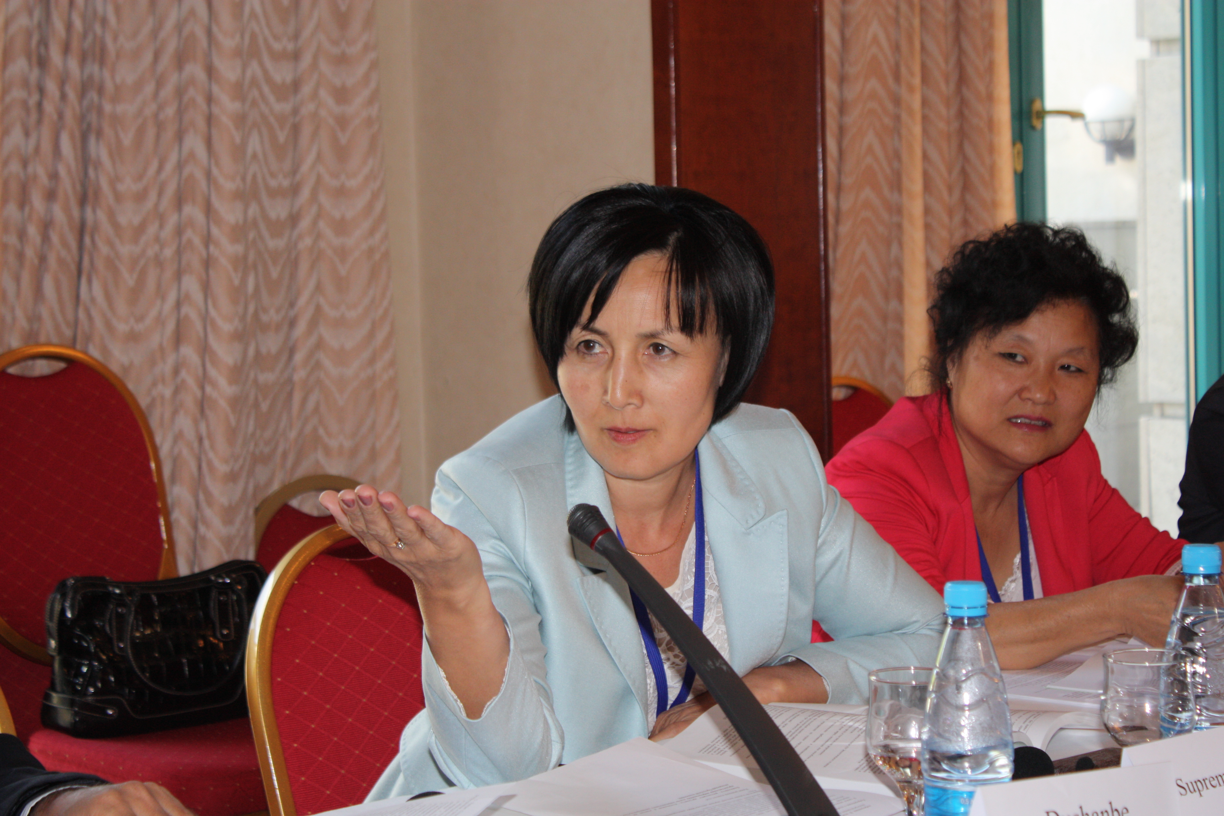 Gulzhakhan Imanaliyeva, Judge for the Mangistau region, Kazakhstan, presents her views at the regional conference on implementing the Aarhus Convention organized by the OSCE and UNECE in Almaty, Kazakhstan, 22 May 2012.