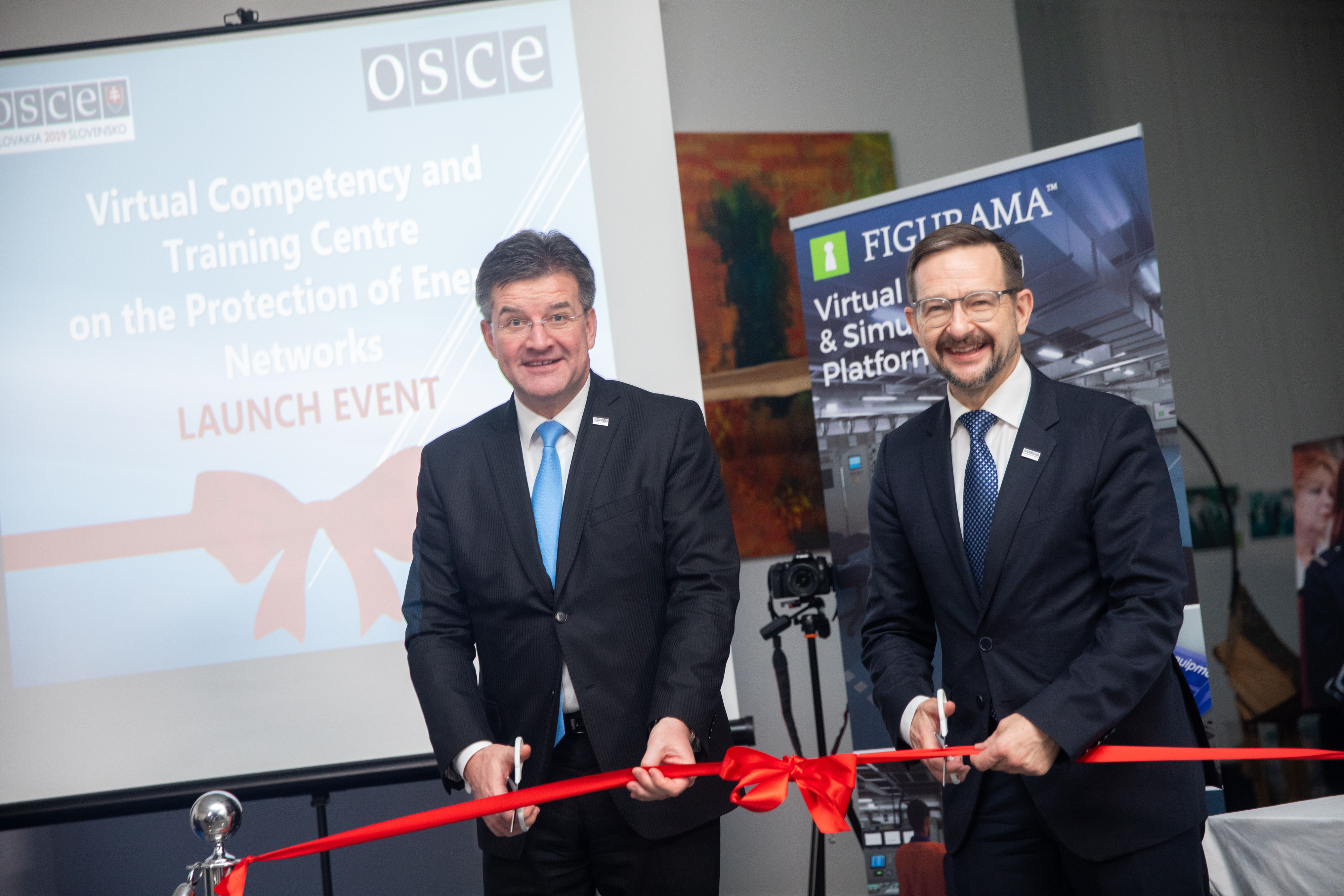 (l-r) Chairperson-in-Office and Minister of Foreign and European Affairs of the Slovak Republic Miroslav Lajčák and OSCE Secretary General Thomas Greminger at the launch of the virtual centre for the protection of critical energy infrastructure, Bratislava, 5 December 2019.