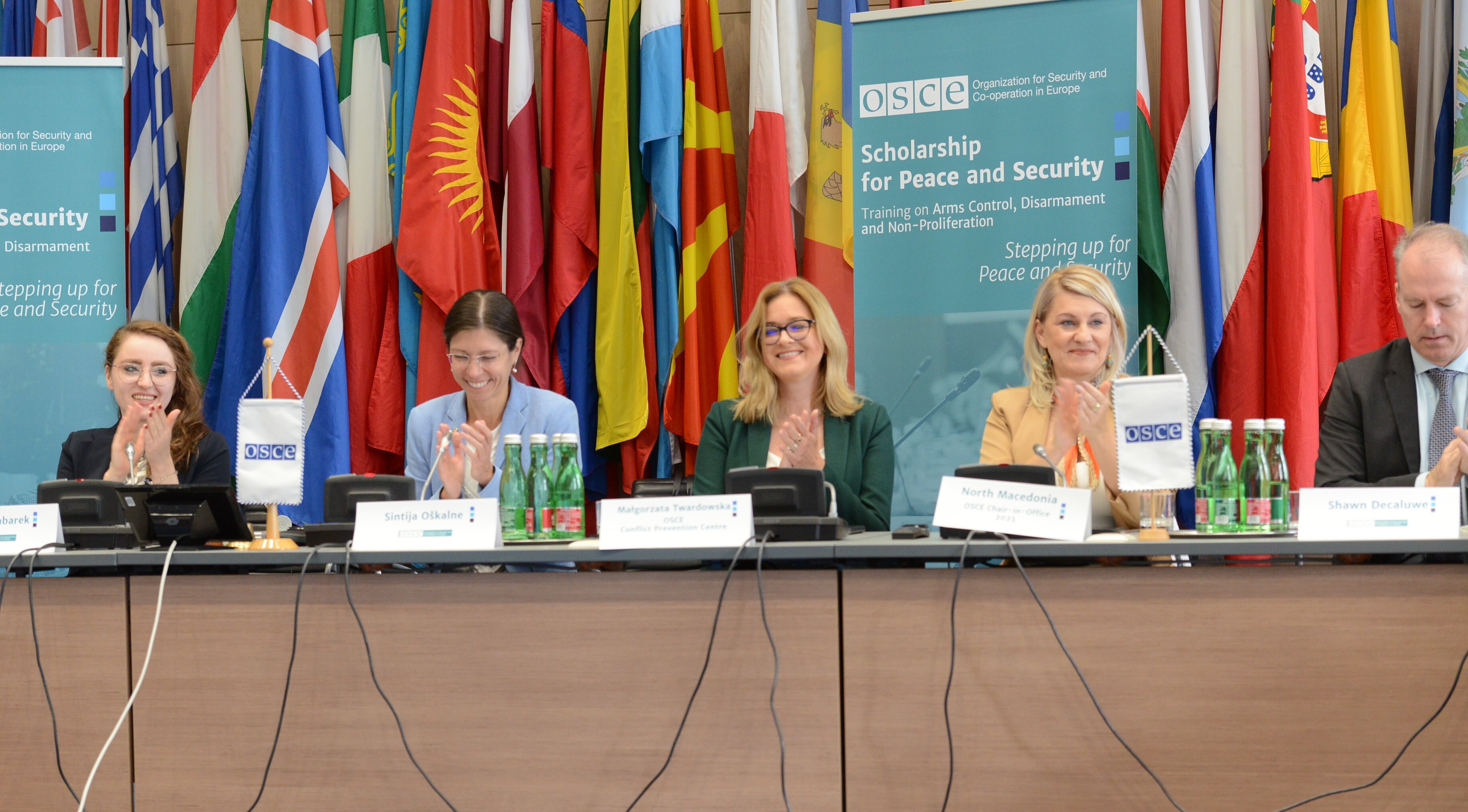 OSCE Conflict Prevention Centre team members, accompanied by the representative of the OSCE Chair-in-Office, at the opening ceremony of the OSCE Scholarship for Peace and Security, Vienna, 6 November 2023