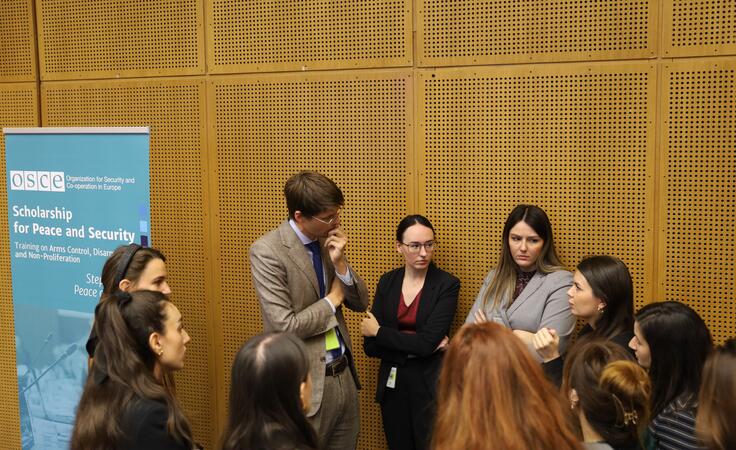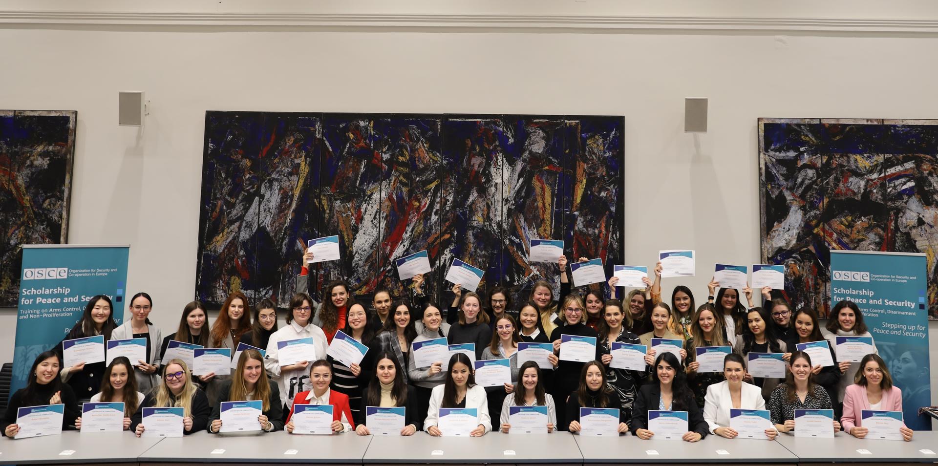 The 2023 Scholarship for Peace and Security in-person course on conflict prevention and resolution took place from 6 to 10 November 2023. Forty-two young female professionals from 37 OSCE participating States and Partners for Co-operation were provided with an opportunity to deepen their knowledge on the topics of arms control, disarmament, and non-proliferation in the OSCE area.