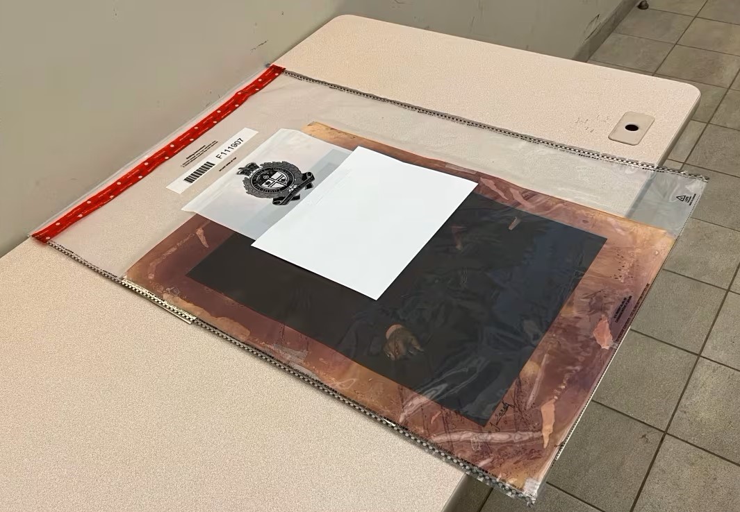 Forgery of the 'Roaring Lion' portrait discolored by forensic analysis.