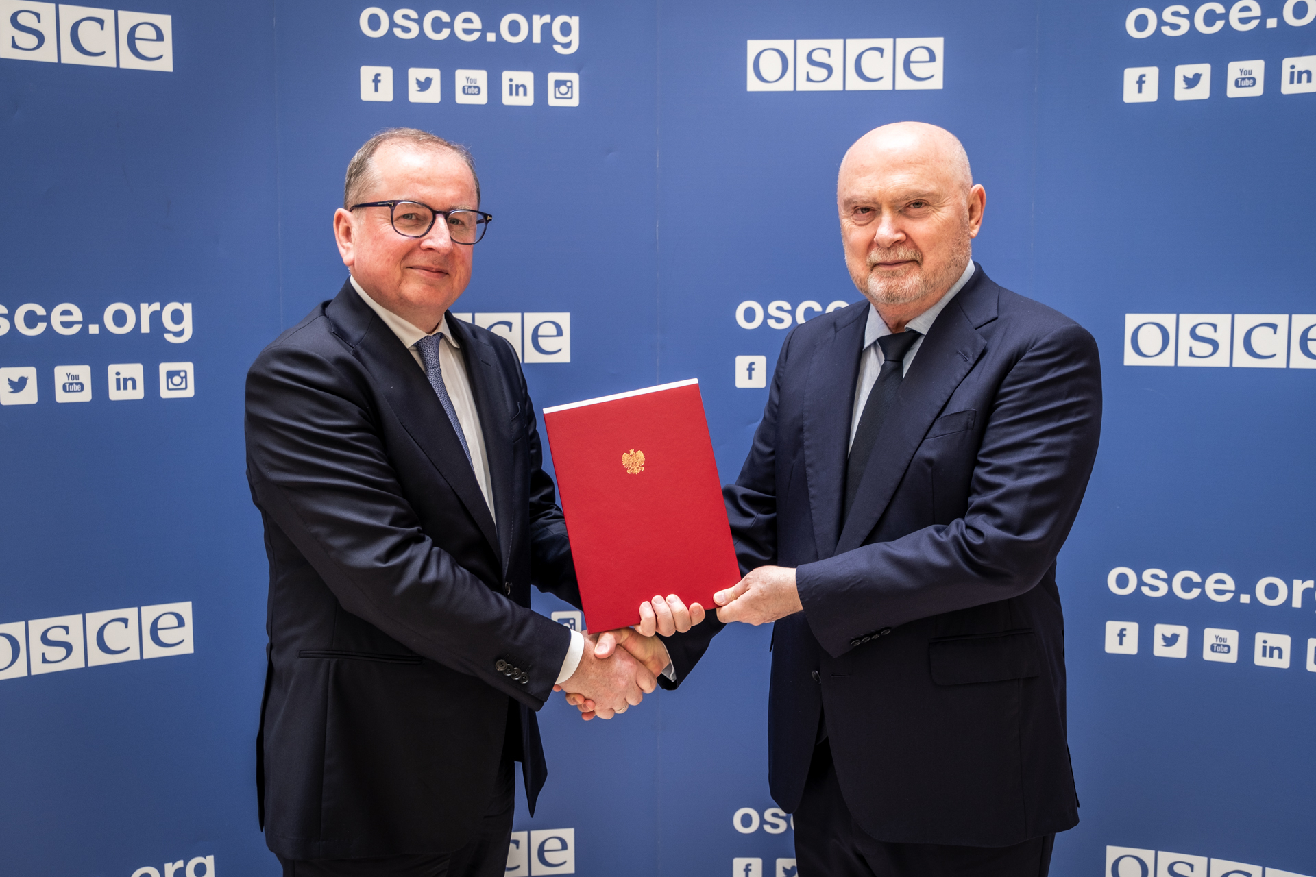 H.E. Marek Szczygiel, Ambassador and Permanent Representative of Poland to the OSCE, with the OSCE Secretary General Feridun H. Sinirlioğlu, Vienna, 20 May 2025.