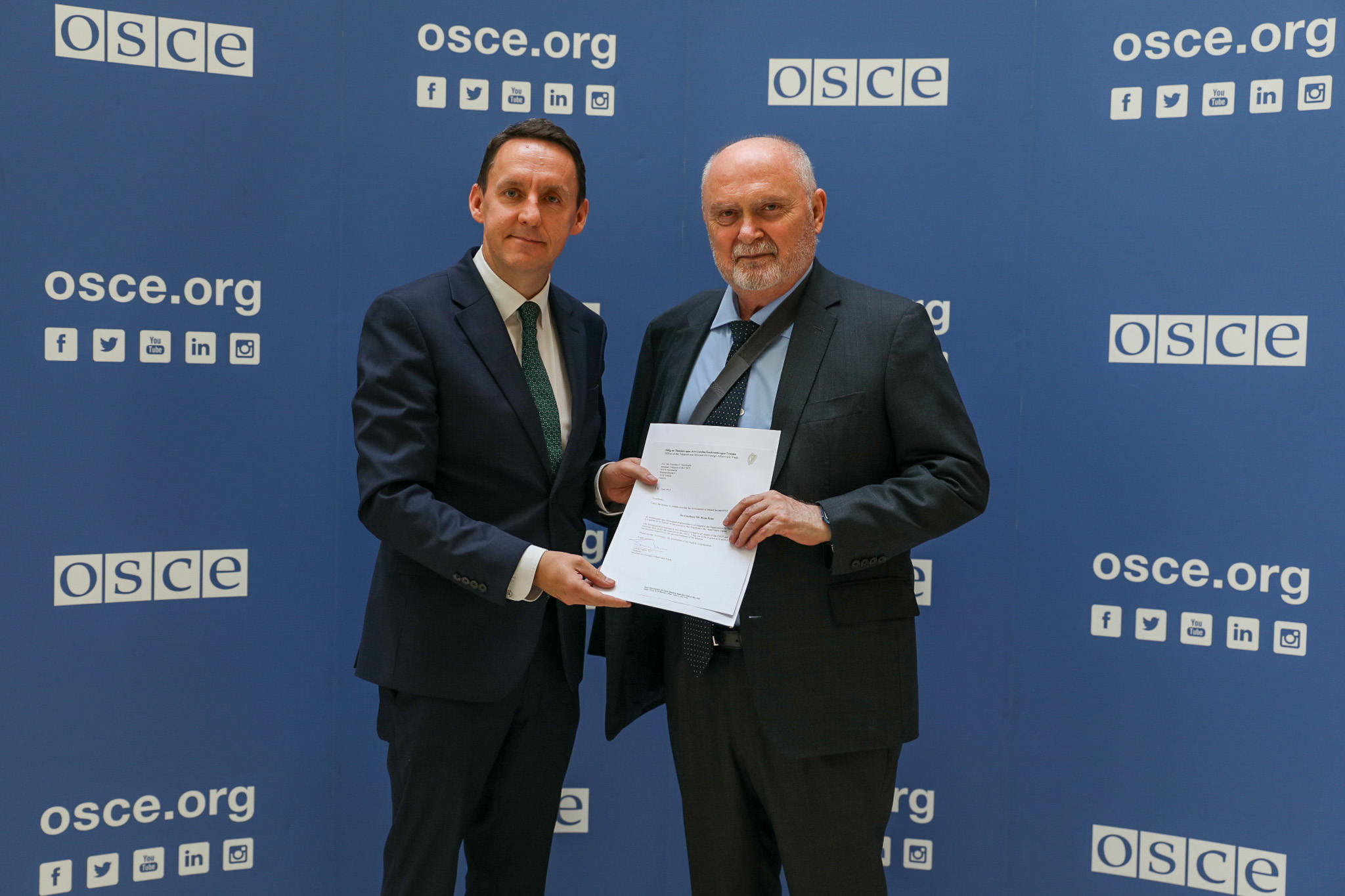 H.E. Brian Flynn, Ambassador and Permanent Representative of Ireland to the OSCE, with the OSCE Secretary General Feridun H. Sinirlioğlu, Vienna, 3 September 2025.