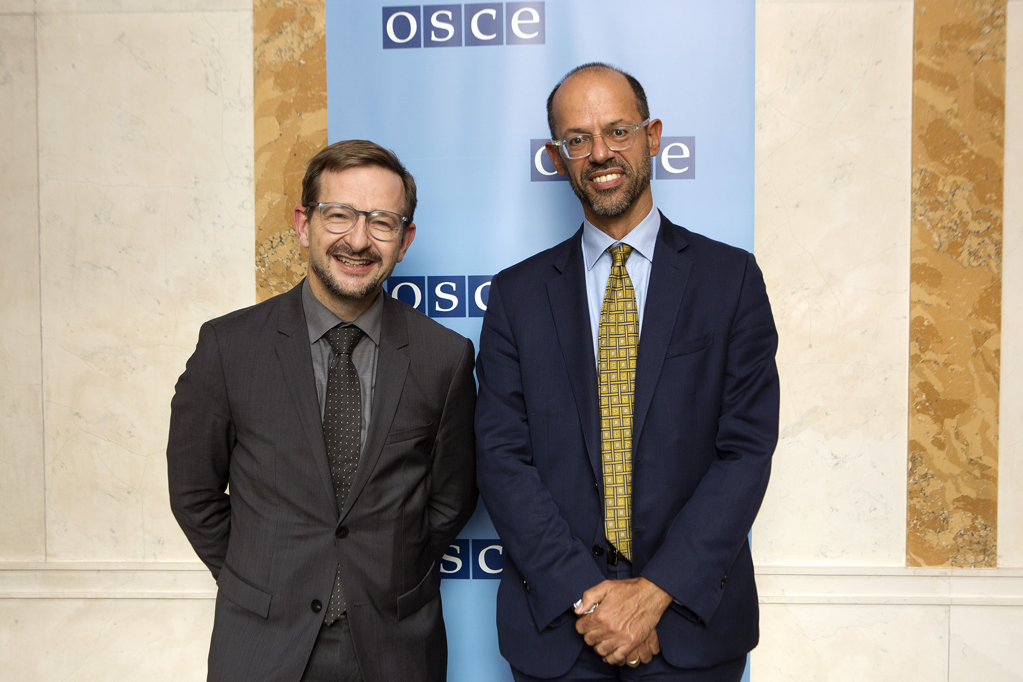 H.E. Ioannis Vrailas (r), Permanent Representative of the EU to the OSCE with OSCE Secretary General Thomas Greminger, Vienna, 5 September 2017.