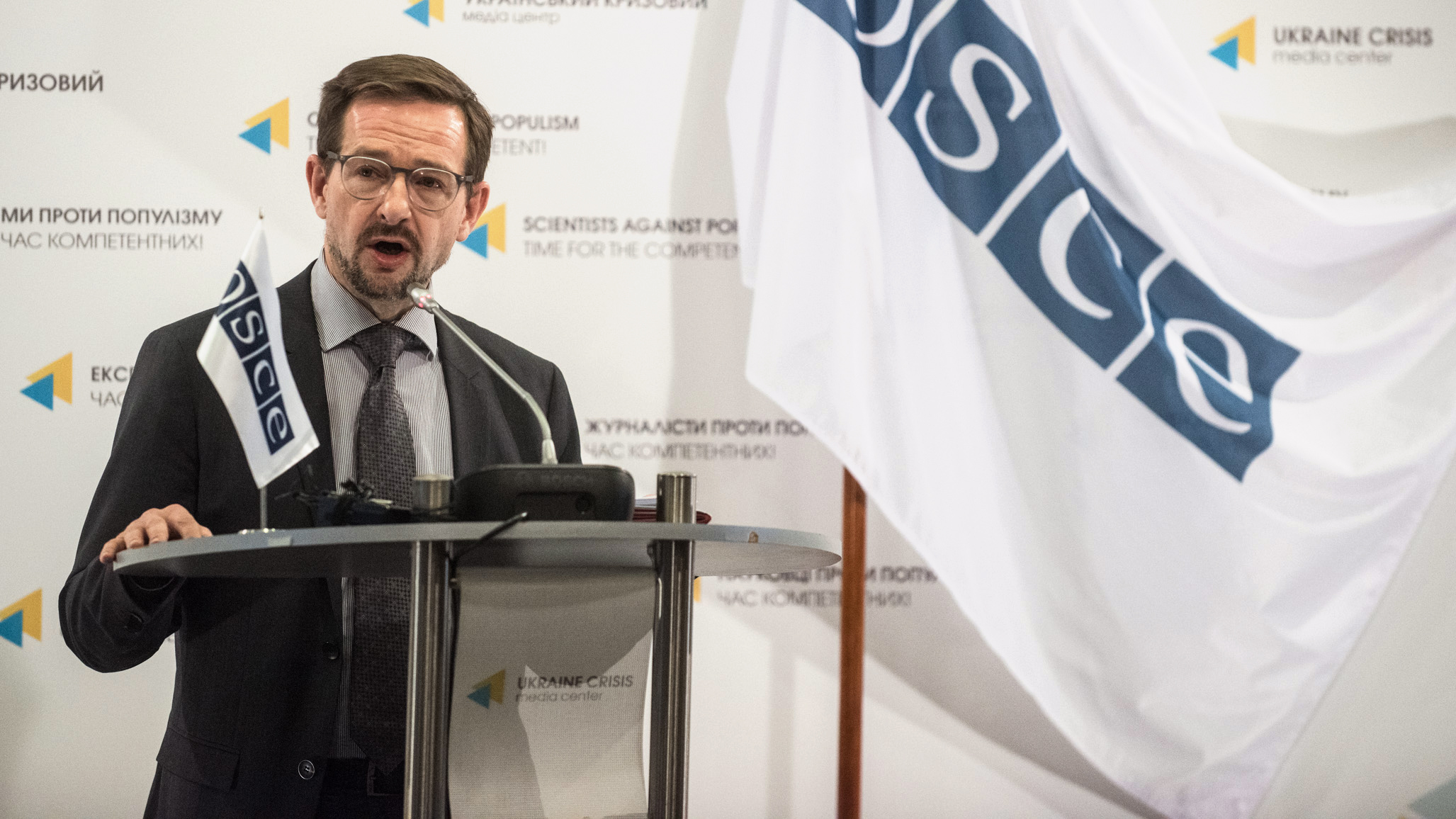 Thomas Greminger, OSCE Secretary General speaking to the media during a news briefing, Kyiv, 14 September 2017.