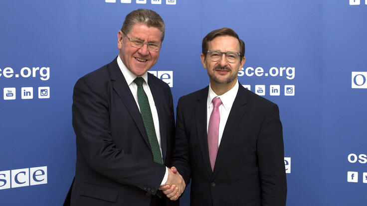 Ambassador Kevin Dowling (l), Head of the Permanent Mission of Ireland to the OSCE with OSCE Secretary General Thomas Greminger, Vienna, 27 September 2017.