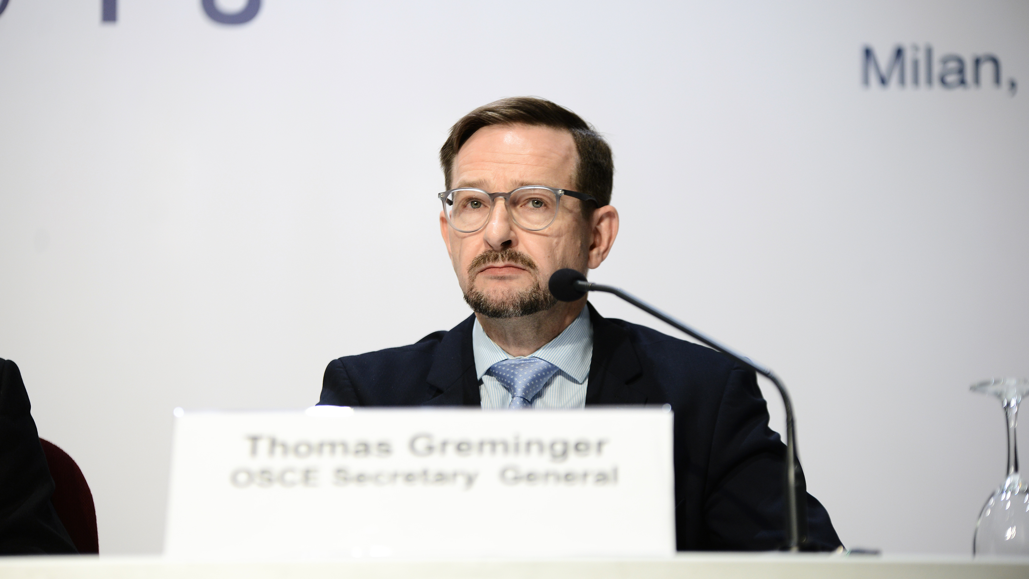 OSCE Secretary General Thomas Greminger during the final press conference, 25th OSCE Ministerial Council, Milan, 7 December 2018.