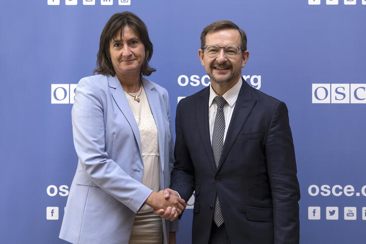 H.E. Emilia Kraleva, Ambassador and Permanent Representative of Bulgaria to the OSCE, with OSCE Secretary General Thomas Greminger, Vienna, 13 September 2019.