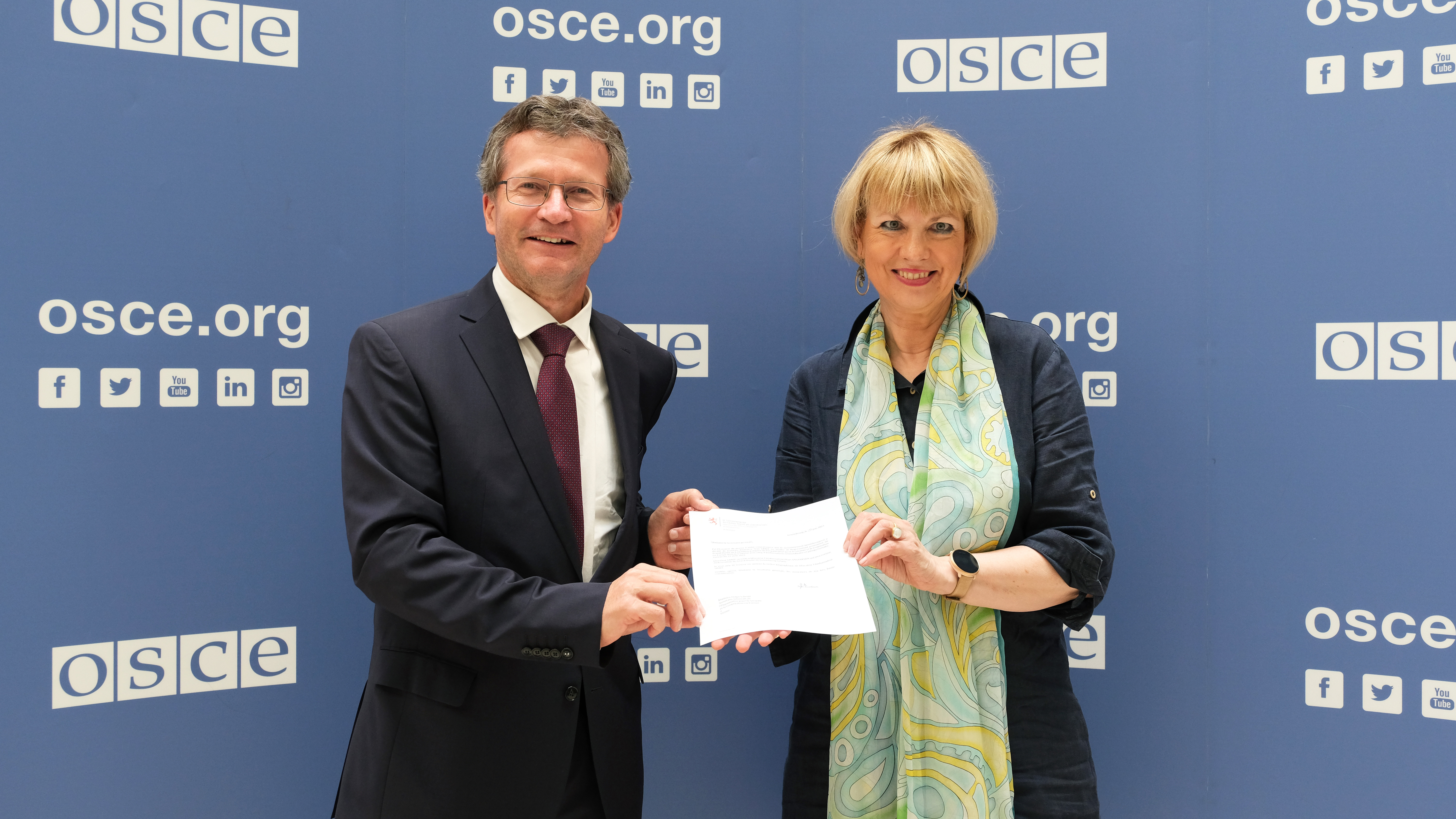 H.E. Jean Graff, Ambassador and Permanent Representative of Luxembourg to the OSCE, with the OSCE Secretary General Helga Maria Schmid, Vienna, 30 August 2022.