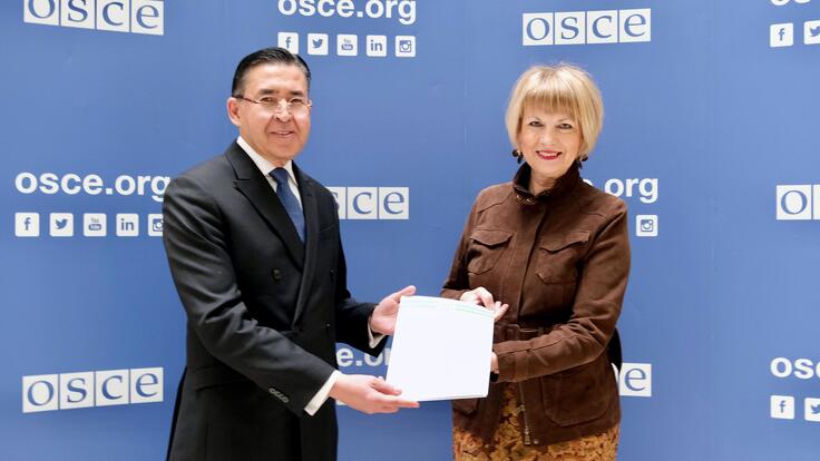 H.E. Bakhtiyor Ibragimov, Ambassador and Permanent Representative of Uzbekistan the Republic of Uzbekistan to the OSCE, with the OSCE Secretary General Helga Maria Schmid, Vienna, 22 November 2023