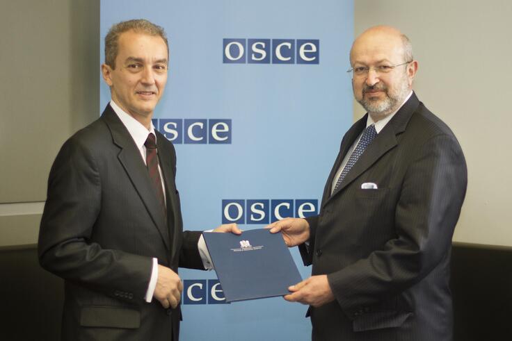 H.E. Ambassador Cristian Istrate (l), Permanent Mission of Romania to the OSCE, and the OSCE Secretary General Lamberto Zannier, Vienna, 16 May 2013.
