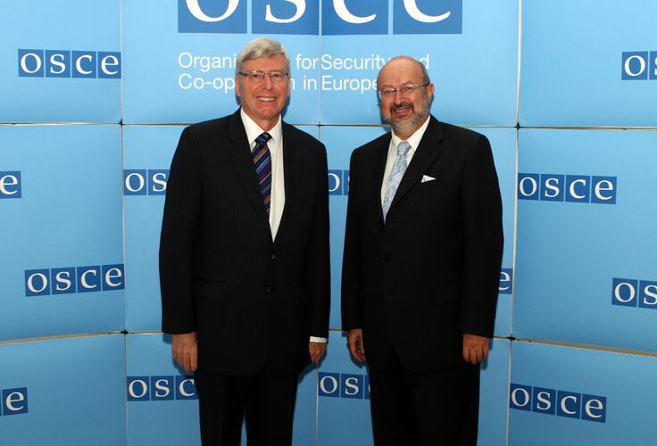 H.E. Ambassador Philip McDonagh (l), Permanent Mission of Ireland to the OSCE, and the OSCE Secretary General Lamberto Zannier, Vienna, 3 September 2013.