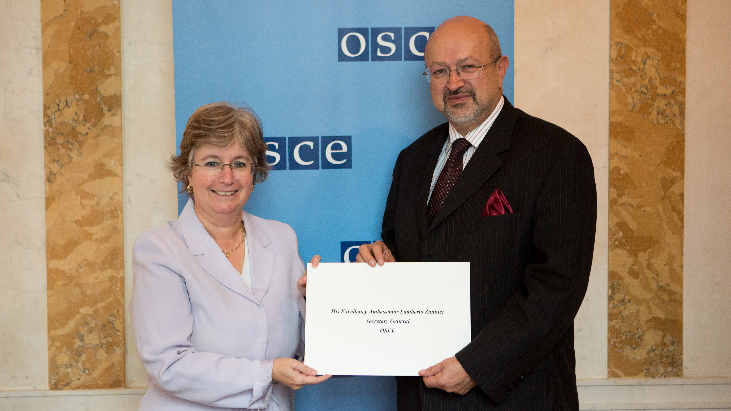 H.E. Ambassador Talya Lador-Fresher (l), Israel, and the OSCE Secretary General Lamberto Zannier, Vienna, 11 November 2015.