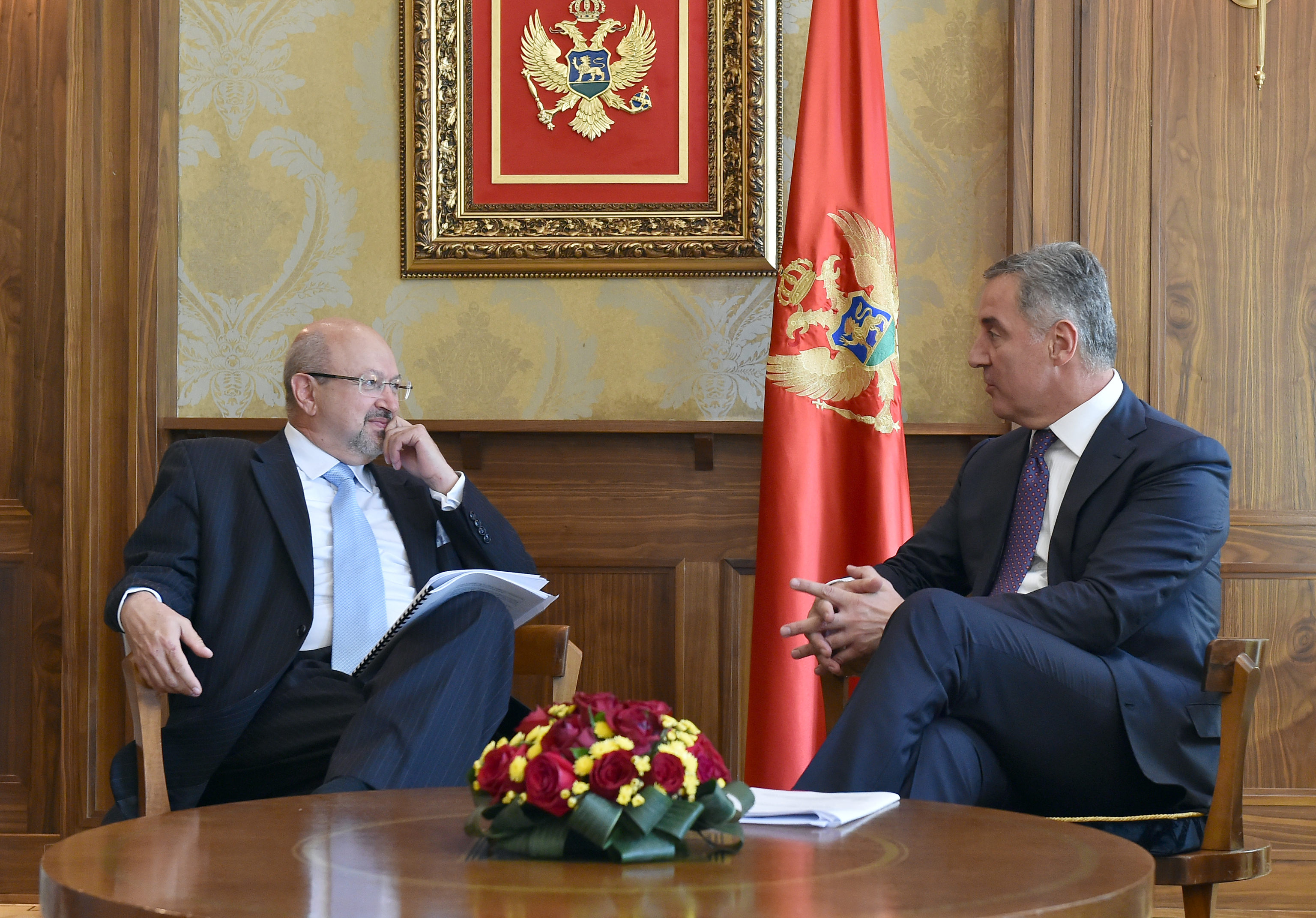 OSCE Secretary General Lamberto Zannier (l) meets with Montenegrin Prime Minister Milo Djukanovic (r), to discuss 10 years of on-going co-operation between the OSCE and Montenegro, Podgorica, 12 July 2016.