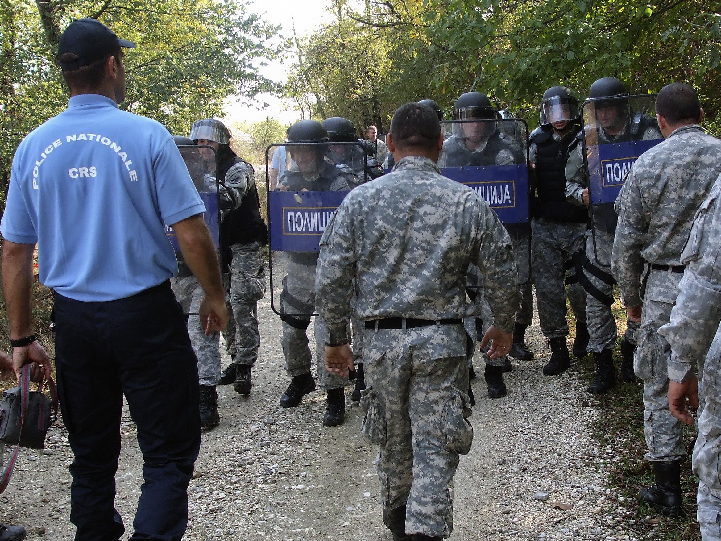 Officers from the national police's rapid-deployment unit take part in an OSCE-supported training course on the use of peaceful crowd-control techniques during public events. Skopje, 16 October 2012.