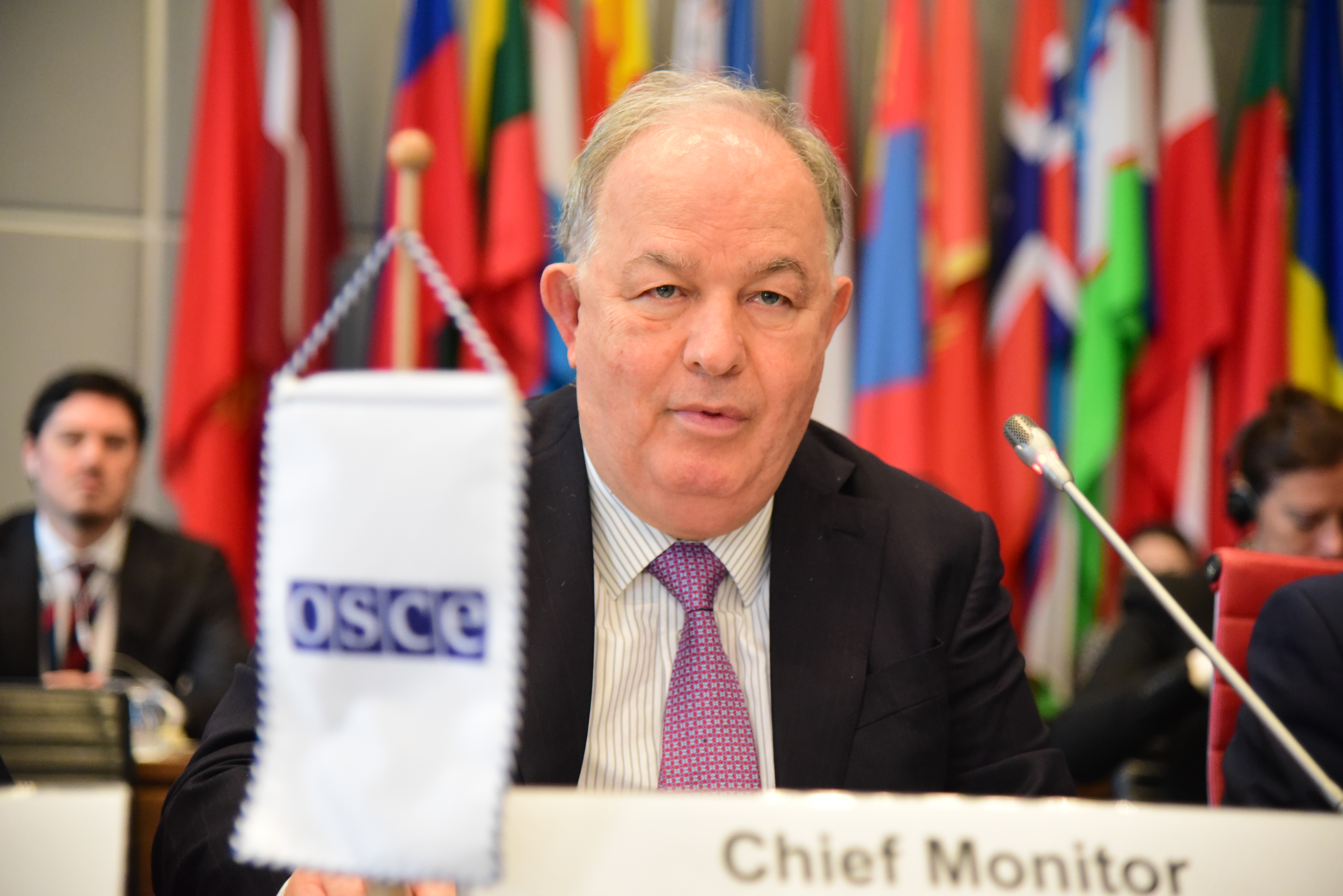 Ambassador Ertugrul Apakan, Chief Monitor of the OSCE Special Monitoring Mission to Ukraine, Vienna, 4 April 2019. (OSCE/Ghada Hazim)