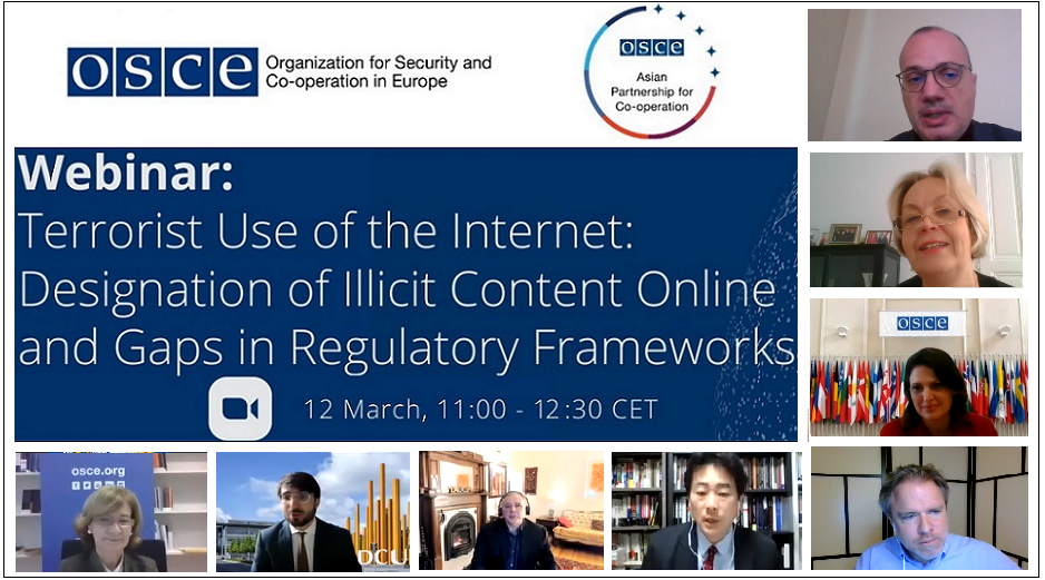 Keynote speakers at the Webinar “Terrorist Use of the Internet: Designation of Illicit Content Online and Gaps in Regulatory Frameworks”, 12 March 2021.