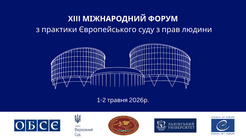 З 1 по 2 травня 2026 року Верховний Суд спільно з Львівським національним університетом імені Івана Франка та Національною школою суддів України у партнерстві з Програмою підтримки ОБСЄ для України та Радою Європи організовує XIII Міжнародний форум з практики Європейського суду з прав людини.
