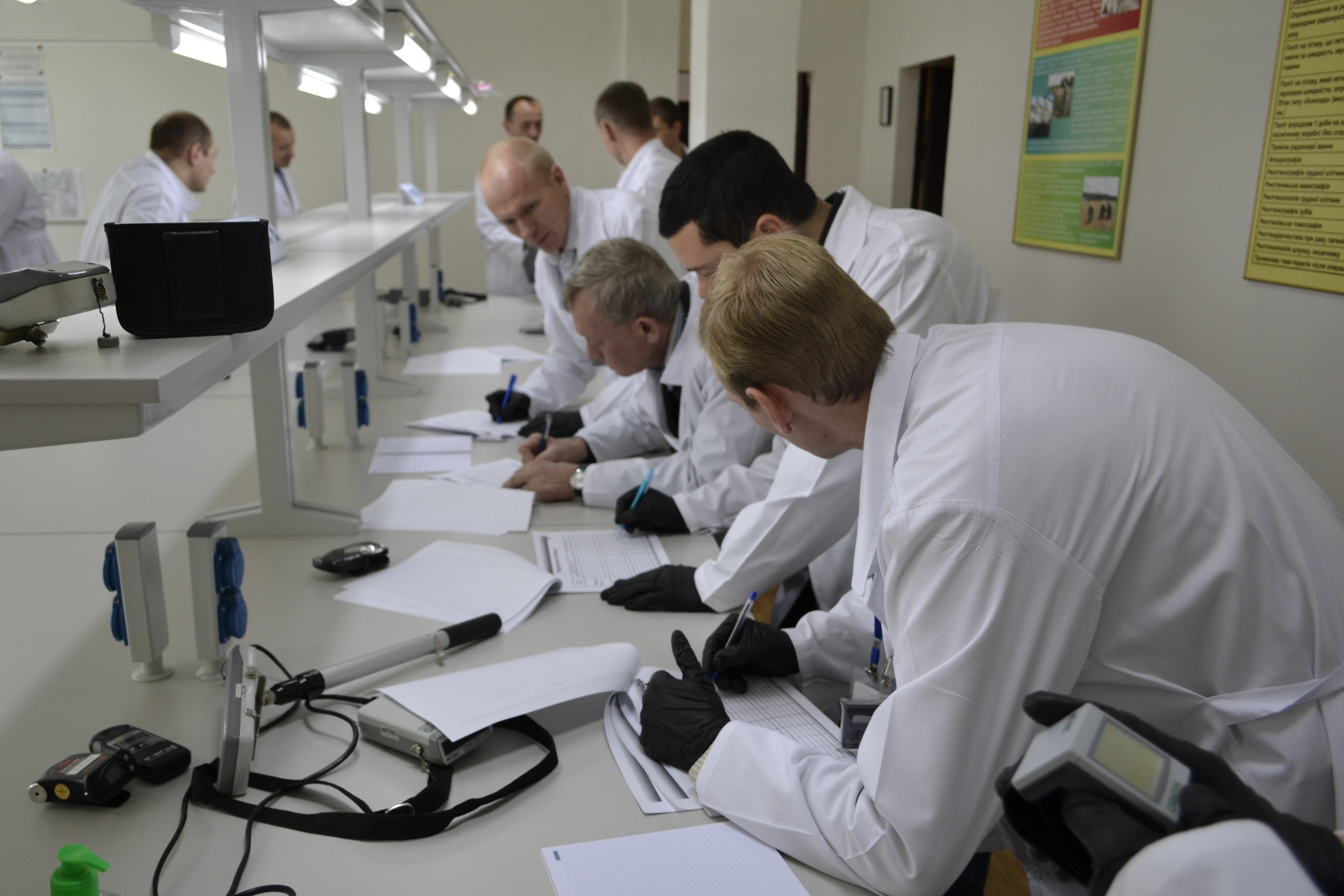 Працівники екологічної інспекції проходять лабораторний практикум з вимірювання іонізуючого випромінювання різними приладами.