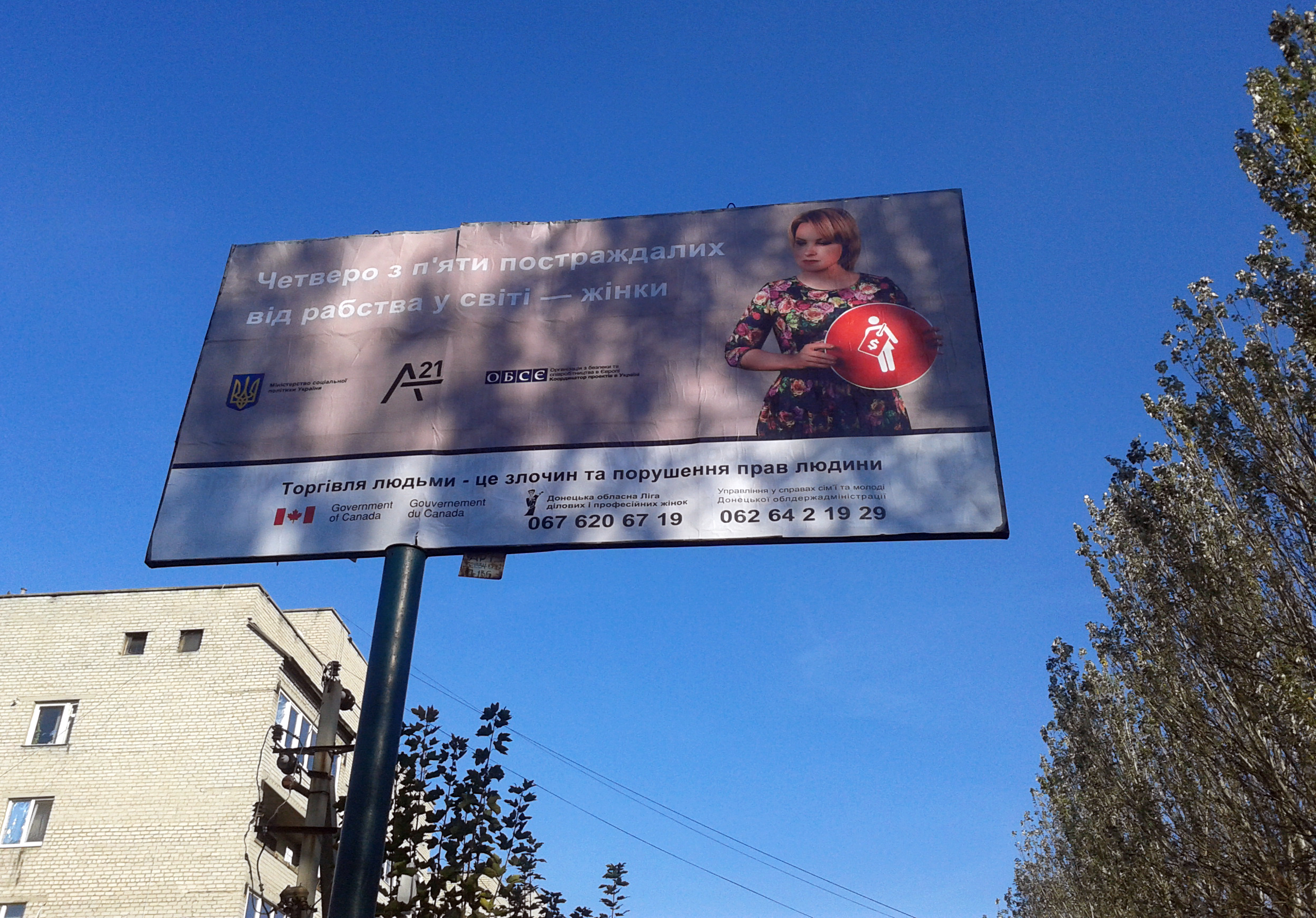 До кінця листопада близько 400 сітілайтів та рекламних щитів із зображеннями відомих людей, які попереджають про ризики торгівлі людьми та експлуатації, були розміщені в 12 областях України.