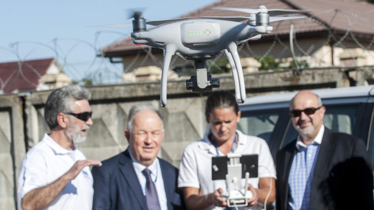 The OSCE Secretary General, Ambassador Lamberto Zannier, and OSCE SMM Chief Monitor, Ambassador Ertugrul Apakan visit the Kramatorsk Hub on 8 September, 2016.