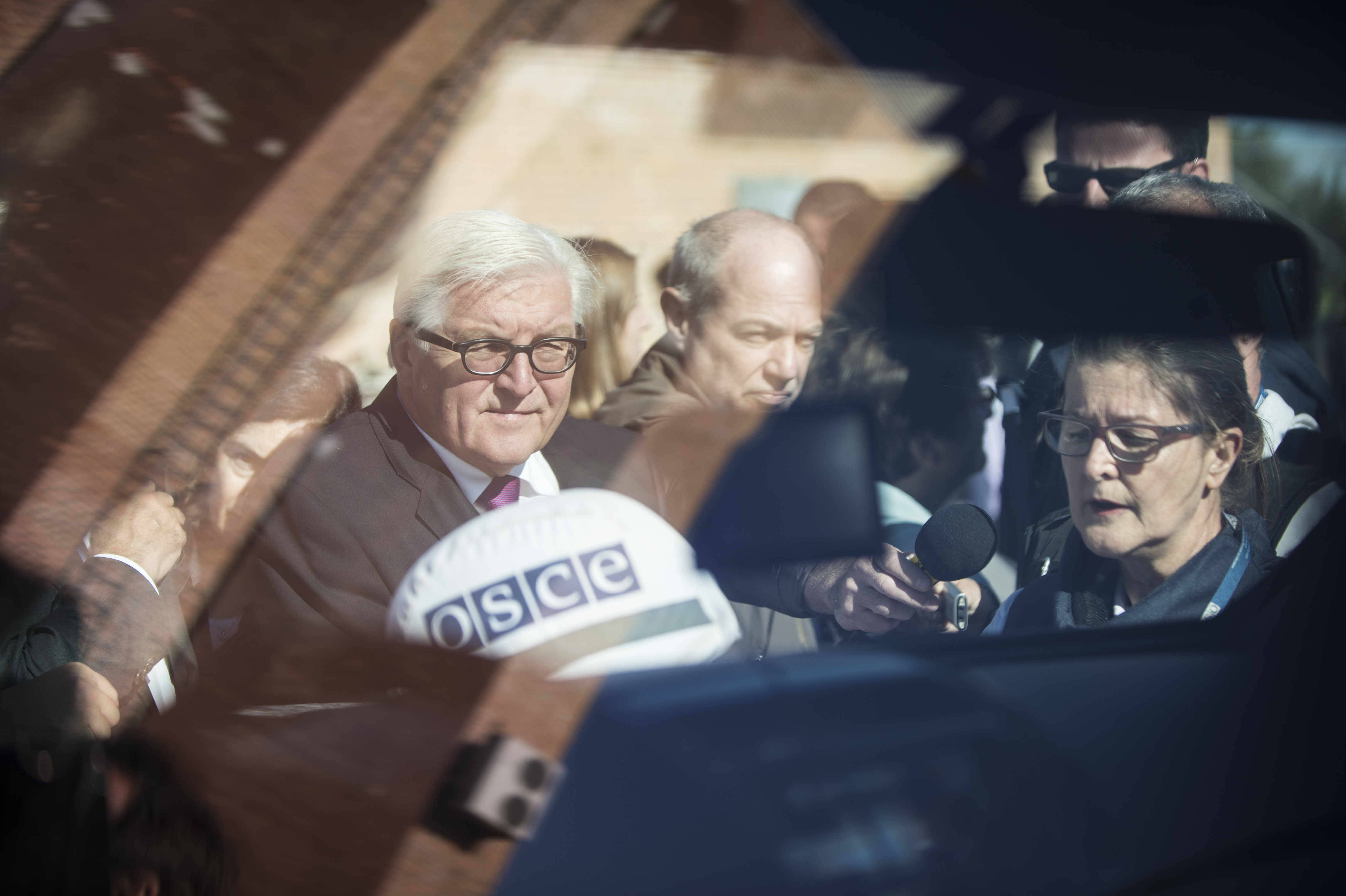 Chairperson-in-Office, Frank-Walter Steinmeier, attends a "mine awareness kit" presentation at the OSCE patrol hub in Kramatorsk, 15 September 2016.