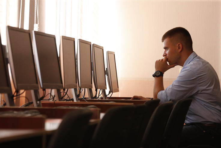 A day before his graduation in July 2016, 23-year-old cyber police recruit Dmytro takes a seat behind a desk in a new room of the Kharkiv National University of Internal Affairs, complete with state-of-the-art equipment provided by the OSCE Project Co-ordinator Ukraine and financed by the Canadian government.