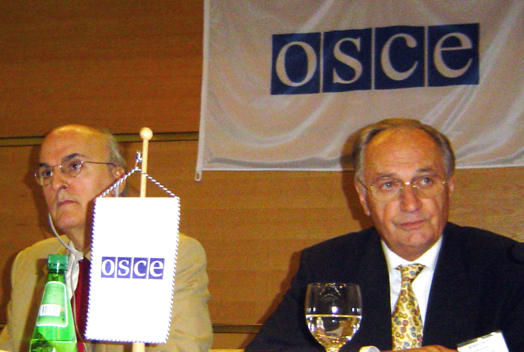 Ambassadors Jorge Fuentes (left) and Boris Frlec, at an OSCE conference of Justice Ministers from Croatia, Bosnia and Herzegovina and Serbia and Montenegro on inter-state judicial co-operation in war crime proceedings, in Veliki Brijuni, 8 June 2005.