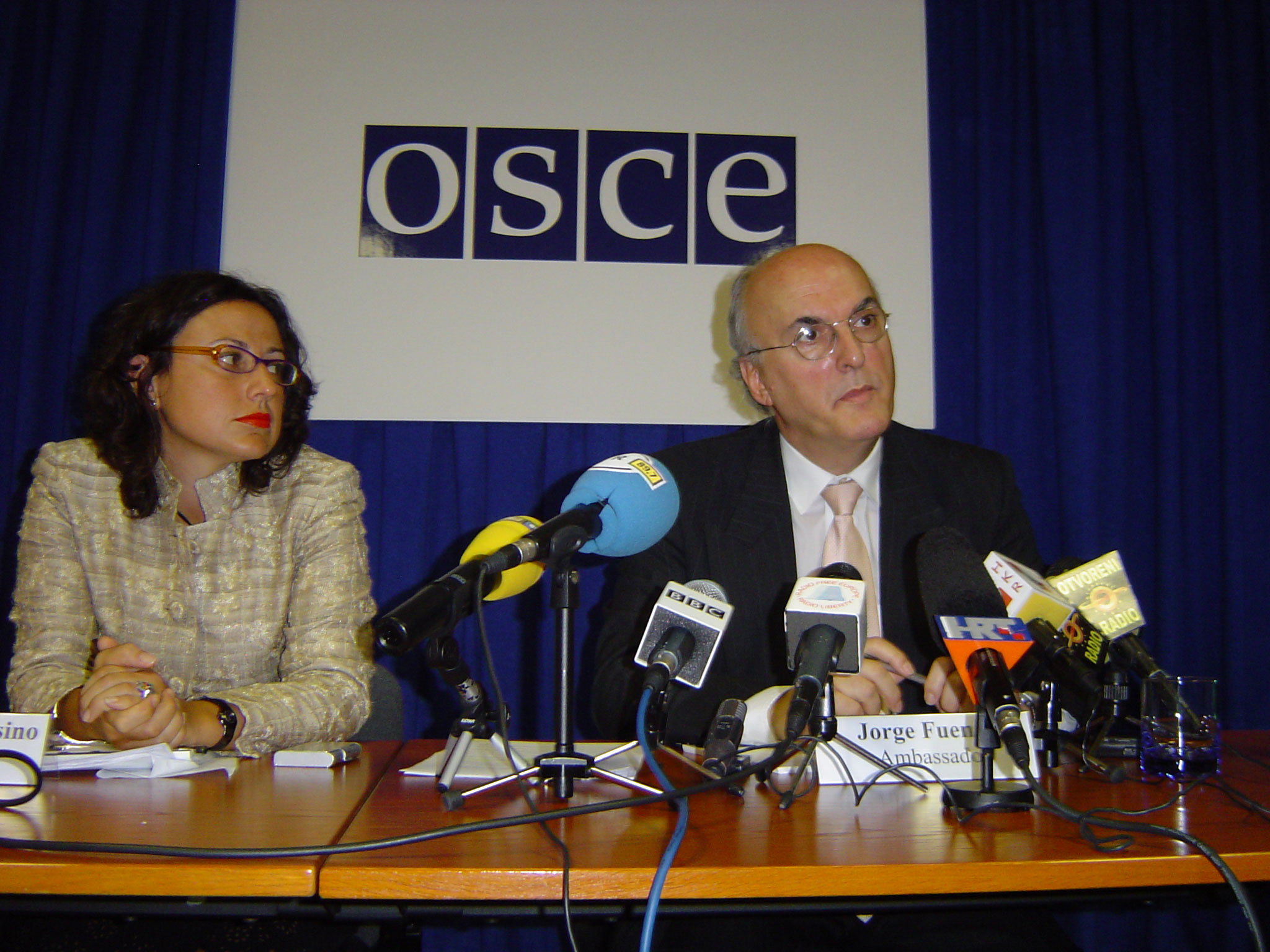 The Head of the OSCE Mission to Croatia, Ambassador Jorge Fuentes (right), and Spokeswoman Antonella Cerasino present to the media the six-monthly report on the progress Croatia made in meeting its international commitments, Zagreb, 12 July 2005.